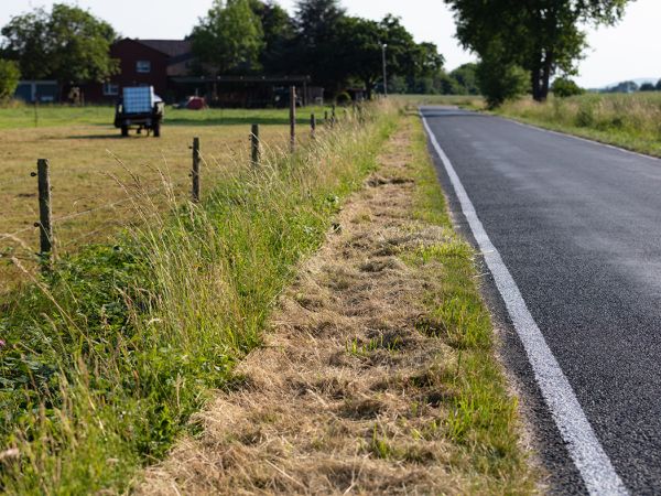 Wir mulchen Straßen und Wegeränder, Wildäsungsflächen / Wildäcker und Streuobstwiesen. Hierfür setzten wir einen John Deere M6125 und einen Maschio Mulcher ein.