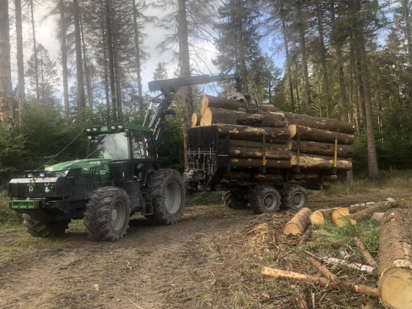 Der Kotschenreuther sowie der Rückezug sind mit Bioöl und Breitreifen ausgestattet. Die Breitfreifen simd wichtig, dafür das wir Bodenschonend im Wald unterwegs sind. Das Bioöl ist biologisch abbaubar und schadet dadurch den Wald und den Waldboden nicht.